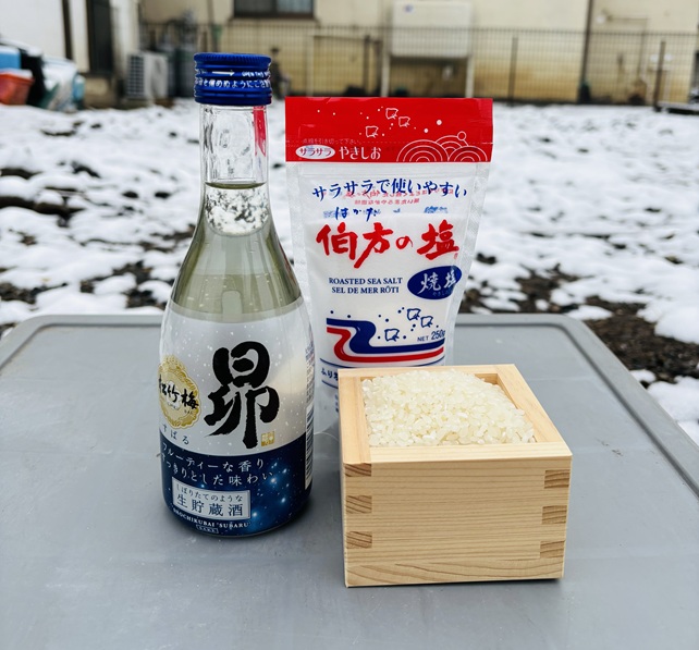 土地を掘ったり土を動かす前に、酒、洗米、塩でお清めをさせていただき